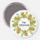 Three dimensional daisies in glowing neon colors of orange, yellow, and green with green blades of grass. Personalize with name in center.