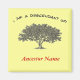 O nome do ancestral é exibido abaixo da imagem do carvalho. O texto curvo "Sou descendente de:" aparece sobre a árvore. O nome do analista é inserido no modelo disponível.