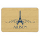 Magnet francês de Flourish Premium Elegante e chic, com fundo falso de madeira e design de Torre Eiffel em azul escuro, com cascatas de espirais na moda. Esta design de moda e moda é fácil de personalizar com o texto personalizado de sua escolha. Clique em "Personalizar" para encontrar mais opções de personalização.