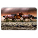 Este ímã flexível é mostrado com uma impressão de arte de cavalos selvagens na borda das águas. Personalize este item ou comprar como está. Imagem do stock