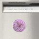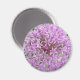 Um belo ímã fotográfico de uma flor de alumínio roxo para colocar na geladeira em casa.