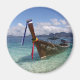 Um barco longtail ao largo da costa de uma ilha na Tailândia