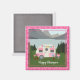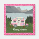 Câmera bonita ou imã de geladeira temática RV. Criado com uma imagem de uma cena de trailer viagem e flamingo, com estilo retrorreflector, no estilo de um vidro rosa, com o seu próprio texto editável. Veja outros itens nesta mesma coleção em Camp_and_Cottage no Zazzle.