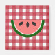 Este design de diversão apresenta um padrão vermelho de toalha de mesa e uma fatia de melancia. Para personalizar, clique no botão Personalizar.