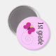 Este ímã divertido do Primeiro Grau tem um cadinho de borboleta rosa brilhante e uma citação do Grau de 1 rua. É perfeito para colocar na geladeira ou um armário de arquivos de metal ou um quadro em sala de aula!