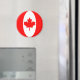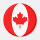 A bandeira do Canadá foi cuidadosamente adaptada à forma circular deste ímã. Uma maneira decorativa de promover a cultura canadense.
