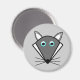 Este ímã apresenta um desenho em estilo kawaii de um Lobo das cinzas bonitinho com orelhas pontiagudas, olhos azuis brilhantes e nariz preto cercado por bigodes. Este lobo fofo é perfeito para o Halloween ou para amantes de os animais.