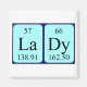 Senhora soletrada como La Dy (Lanthanum Dysprosium) em um ímã para o cientista em você.