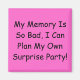 Minha memória é tão ruim que posso planejar minha própria festa surpresa.