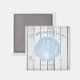 Adicione um toque náutico à sua cozinha com este elegante Blue Vintage Scallop Shell Magnet. O design do Magnet apresenta uma carapaça de couro cabeludo vintage e texto personalizado para que você personalize com seu nome de família contra um fundo de madeira. Itens adicionais de decoração pessoal disponíveis com este design.