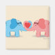 Elefante rosa e azul no amor. Tão fofo e doce para o Dia de os namorados ou como presente para um amante de elefantes. Será que eles terão vitelos roxos?