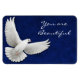 Personalize este ímã Flexi premium rápida e facilmente! Ilustração de arte original de uma pomba branca voadora da designer Carolyn McFann do Two Purring Cats Studio.