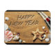 Imagem fantástica de uma praia com conchas, é apresentada neste ímã flexível para as férias. Com a mensagem, "Feliz ano novo", faz disto uma decoração de excelente para o Ano Novo ou dá como um pequeno presente!