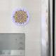 Um elemento redondo com um padrão geométrico em azul, vermelho e verde, uma arte vinda de um manuscrito antigo. Clique em Personalizar para adicionar texto, alterar as cores de fundo e até salvar o design para mais tarde.