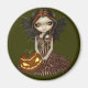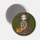 Uma pintura humorística do Dia das Bruxas - pintei esta beleza alada no crepúsculo - há um entardecer enfumaçado no ar enquanto o sol não visto está se pondo. As árvores nuas dão um sabor de frio no ar. Há um grande Jack O'lantern também, sorrindo mal no colo do seu elaborado vestido listrado. Minha própria pintura acrílica original.