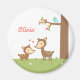 O amor da mãe expressa por uma criança com este magnata planeta florestal temido para o pequeno! Ele apresenta um veado-mãe e filho, pomba e sua proa alegremente em um gramado que tem tulipas vermelhas alegres e margaridas brancas. Um pássaro azul é empoleirado em um galho de árvore. Personalize com o nome da criança.