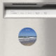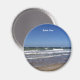 Foto da praia perto de Warnemünde, Alemanha. Ao fundo, podemos ver barcos de ferry atravessando a Noruega.