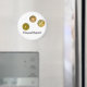 Mármores. Três bolas de vidro laranja com texto "Eu os encontrei!" Use o ímã para manter os papéis no lugar.