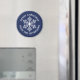 Um floco de neve branco sobre fundo azul marinho com "Feliz Natal" da família ao seu redor.