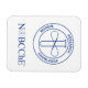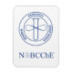 Íman retangular com fundo branco e o selo e logotipo azul NOBCChE.