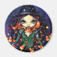 Uma foto de Halloween excelente! Uma bruxinha fofa cercada de doces de Halloween. Minha própria pintura original em acrílico