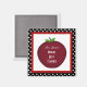 Magneta de Maçã Vermelha, aparada em preto com bolinhas brancas. Personalize alterando o texto e adicione o nome dos professores.