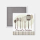 Uma coleção de cozinhar divertidos, retrorados e comendo utensílios decora este ímã personalizado da cozinha. Em tons neutros de marrom, bege, bronzeado e ardósia. Mais esquemas de cores disponíveis:
