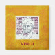 Um retrato de Giuseppe Verdi, o compositor italiano excelente. O fundo lista algumas de suas obras mais conhecidas, como Aida, La Traviata, Nabucco, Rigoletto etc.