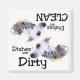 Este ímã da máquina de lavar louça apresenta um doce Terrier na cama com texto que diz: "Os pratos estão sujos". Vire este ímã de cabeça para baixo e o mesmo Terrier aparecerá com este texto: "Os pratos estão limpos". Este design é protegido por direitos autorais e não pode ser copiado ou redistribuído. Para obter informações sobre este ou outros designs nesta loja, ou se você precisar de assistência com personalização, use o recurso enviar mensagem anexado a esta loja e ficaremos felizes em ajudar