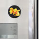Fechar uma Orquídea Amarela de Cymbidium com labela vermelha, isolada sobre fundo preto