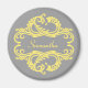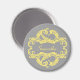 O magneta elegante e sofisticado para o Damasco Chic, com fundo de cinza macio e um ornamento de na moda, floresce em amarelo. Esta design moderna é fácil de personalizar com o seu próprio texto. Clique em "Personalizar" para encontrar mais opções de personalização.