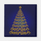 Entre no espírito de Natal com este elegante ímã de árvore dourada com um fundo azul.