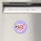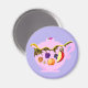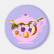 Teapot Magnet Com Fruta E Folhas de Kristie Hubler com folhas onduladas, e bagas como framboesa de ouro ou queda, amora (ou roxa), amora magenta, framboesa azul, groselhas, mirtilos, mais pêssego e maçã vermelha em um ímã redondo