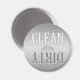 O ímã da máquina de lavar loiça redonda, com aspecto de aço inoxidável, mostra se os pratos estão limpos ou sujos.