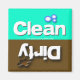 Modo simples de dizer se os pratos estão limpos ou sujos. Evite confusão sobre pratos com toda a família! Bolhas de sabão azul-esbranquiçadas no lado limpo com lama de sujeira marrom no lado sujo. Elementos gráficos bonitos, perfeitos para o estilo moderno ou contemporâneo da cozinha. presente de excelente para uma dona de casa, dona de casa ou diva doméstica!