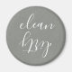 Coordene-se com uma cozinha ao estilo da fazenda e acompanhe os pratos com este simples ímã de máquina de lavar louça. As palavras tipográficas de estilo manuscrito branco "limpo" e "sujo" estão em um papel texturizado de cinza que parece fundo.