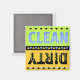 A limpeza está em azul-céu com bolinhas azuis claras sobre fundo limão. Sujo é preto com ouro claro sobre fundo de ouro. Esta é uma ilustração digital.