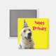 Seria duro não sorrir com esse adorável filhote vestindo um chapéu de festa de aniversário desejando um Feliz Aniversário.