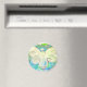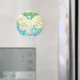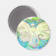 Pintura de um anjo em branco com espirais de cor suaves. O anjo flutua sobre um fundo tranquilo de espuma do mar verde e azul macio.