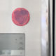 Belo coração vermelho de aquarela em um ímã redondo de 2 polegadas. Arte de Maeve & Charlotte.