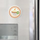 Um imã com um anúncio retrô inspirou um design que consiste numa ilustração de um cupcake de cenoura com gelado de queijo creme tocado com uma pequena cenoura. O cupcake é um círculo laranja decorativo dentro com o texto "Experimente os Cupcakes de Cenoura Frescos" e "50 ui"