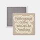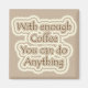 O imã do refrigerador lembra que "Com café suficiente você pode fazer qualquer coisa. Maciço, cafezinho e cremes.