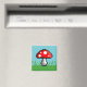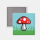 Um cogumelo de arte de pixel. O cogumelo vermelho fica na grama verde com um céu azul.