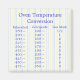 Este magente é bonito e útil. Ele apresenta um fundo de listras pastel em cores de amarelo, azul e branco. Há uma conversão de temperatura de Fahrenheit para Centigrado para Gás Mark e novamente. Perfeito para quem tem um livro de cozinha de um país diferente ou alguém que se mudou para outro país!