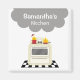 Um ímã de cozinha com ilustração de um fogão bege sentado sobre um chão checado preto e branco. Um pote vermelho e uma frigideira vermelha estão sentados nos dois olhos da frente do fogão com tiros deles. Personalize com seu nome na nuvem de fumaça sobre o fogão. Uma boa maneira de fazer luz sobre sua própria falta de habilidades de cozinhar...Não reclamado como presente para outra pessoa!
