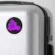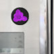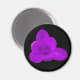 Este ímã apresenta uma foto de uma flor de croco que foi alterada digitalmente adicionando um filtro para girar a flor em roxo. A flor está sobre fundo preto.