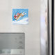 Uma pintura fofa de um coelho vestindo chapéu e cachecol que grava este ímã. Esta imagem também está disponível em outros produtos da minha loja Zazzle.