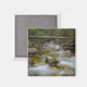 Fotoímã de Souvenir com água com borrão em movimento em um riacho rochoso em uma floresta na Noruega com uma árvore caída como ponte sobre ela.