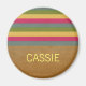 Tópico Texturizado Stripes Personalizáveis Magnet. Este design apresenta listras texturizadas sobre um fundo de papel marrom angustiado. Este ímã verde mas vibrantemente colorido pode ser personalizado com um nome ou outro texto personalizado. Adicione um pouco de estilo e talento à sua geladeira ou outra superfície magnética!