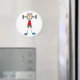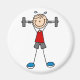 Uma figura de bastão levantando pesos aparece neste íman de figura de bastão com tema de malhação.